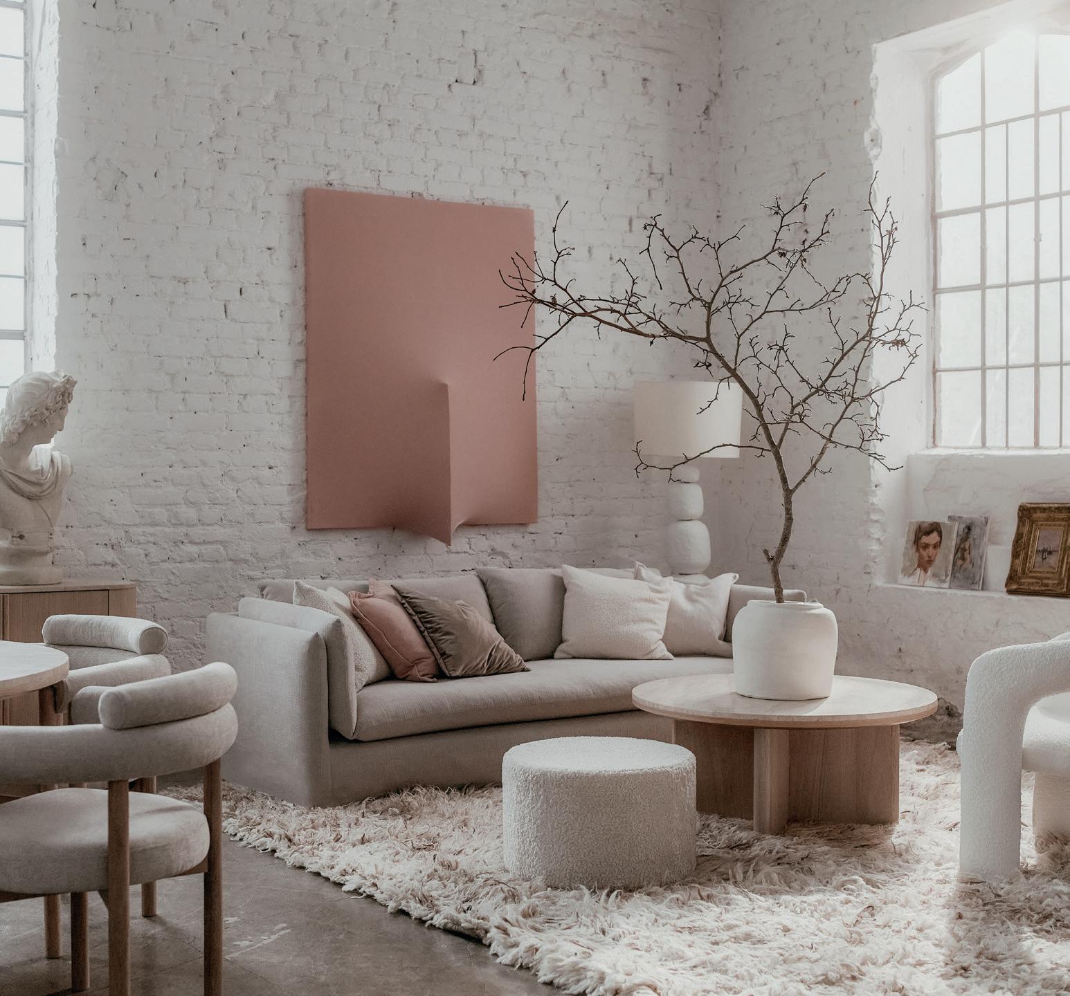 mønstre og tepper med struktur inspirert av naturen. Lampene blir mer skulpturelle, og tekstilskjermer bidrar til å skape den lune atmosfæren.