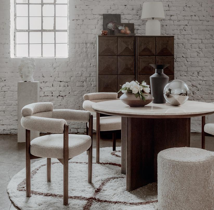 BARDO spisestol 5.199,- GALAXIE GIANT vase 2.999,RITZ spisebord 14.999,- Bordet kommer i januar 2025