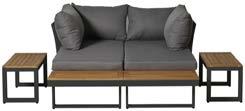 DIVANO LOUNGE MOOY hjørnesofa med alu.ramme svart, QDF (quick dry foam) og tekstil i Sunbrella Lead Chinê 260x262, H 68 cm 37.999,- Nr. 243942 CORAL sofastol alu. ramme i svart, QDF og tekstil i Sunbrella Lead Chine 75x75, H 61 cm 5.499,- Nr. 243937 SIGNATURE COLLECTION GARDEN sofabord sett/3 med alu.ramme og bordplate i spraystone glass 90x90, H 45 cm/82x43, H 42 cm 7.499,- Nr. 216565