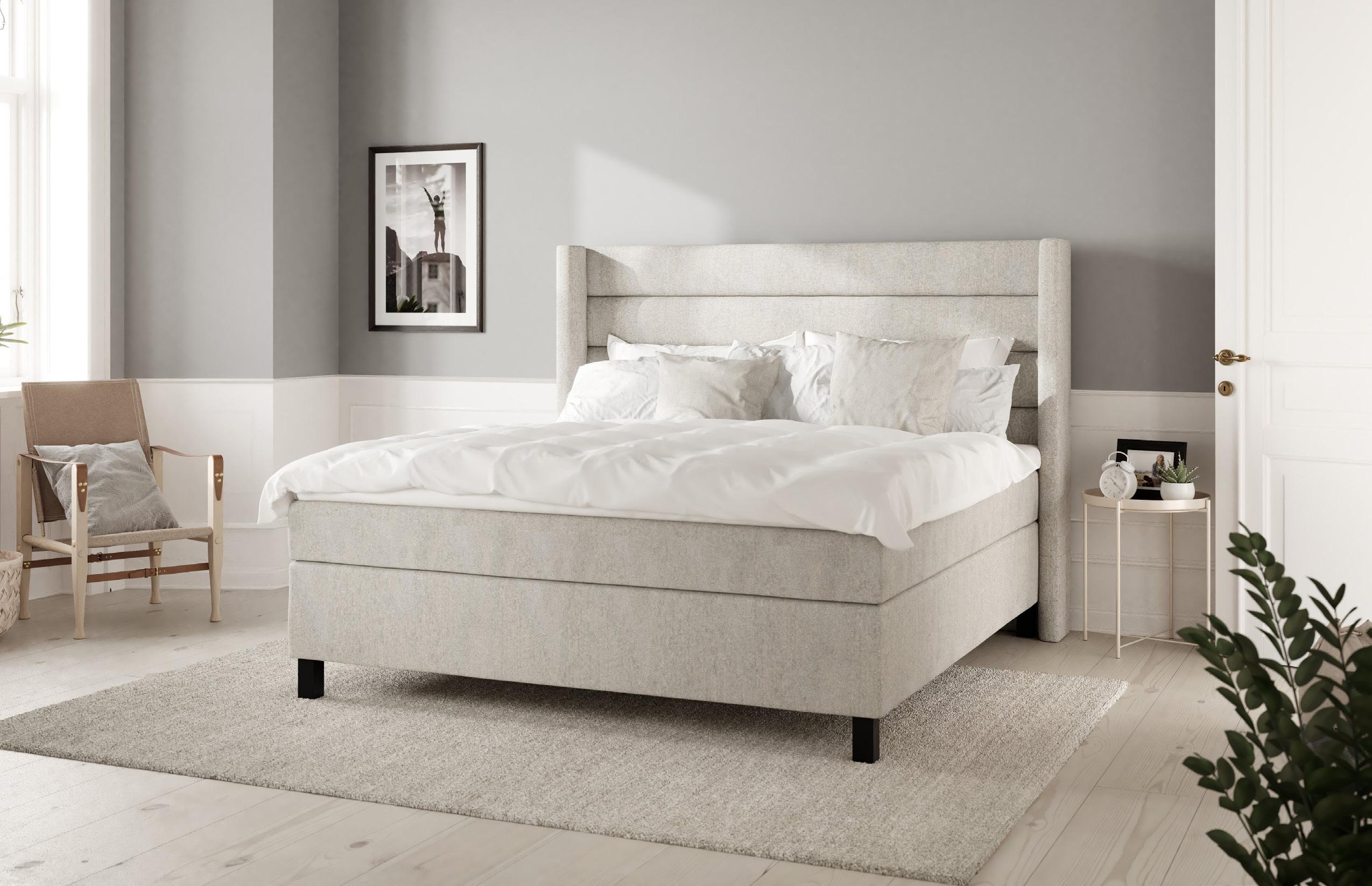 VIP kontinentalseng i Rime 06 Premium Latex overmadrass med square black ben 13 cm, 140x200 cm NÅ 19.999,(før 28.999,-) Nr. 286132 HORIZON sengegavl i Rime 06 140x140 cm NÅ 7.124,- (før 9.499,-) Nr. 275529 Seng og gavl leveres i flere størrelser, se bohus.no SPAR 9000 VIP KONTINENTALSENG 140X200 19.999