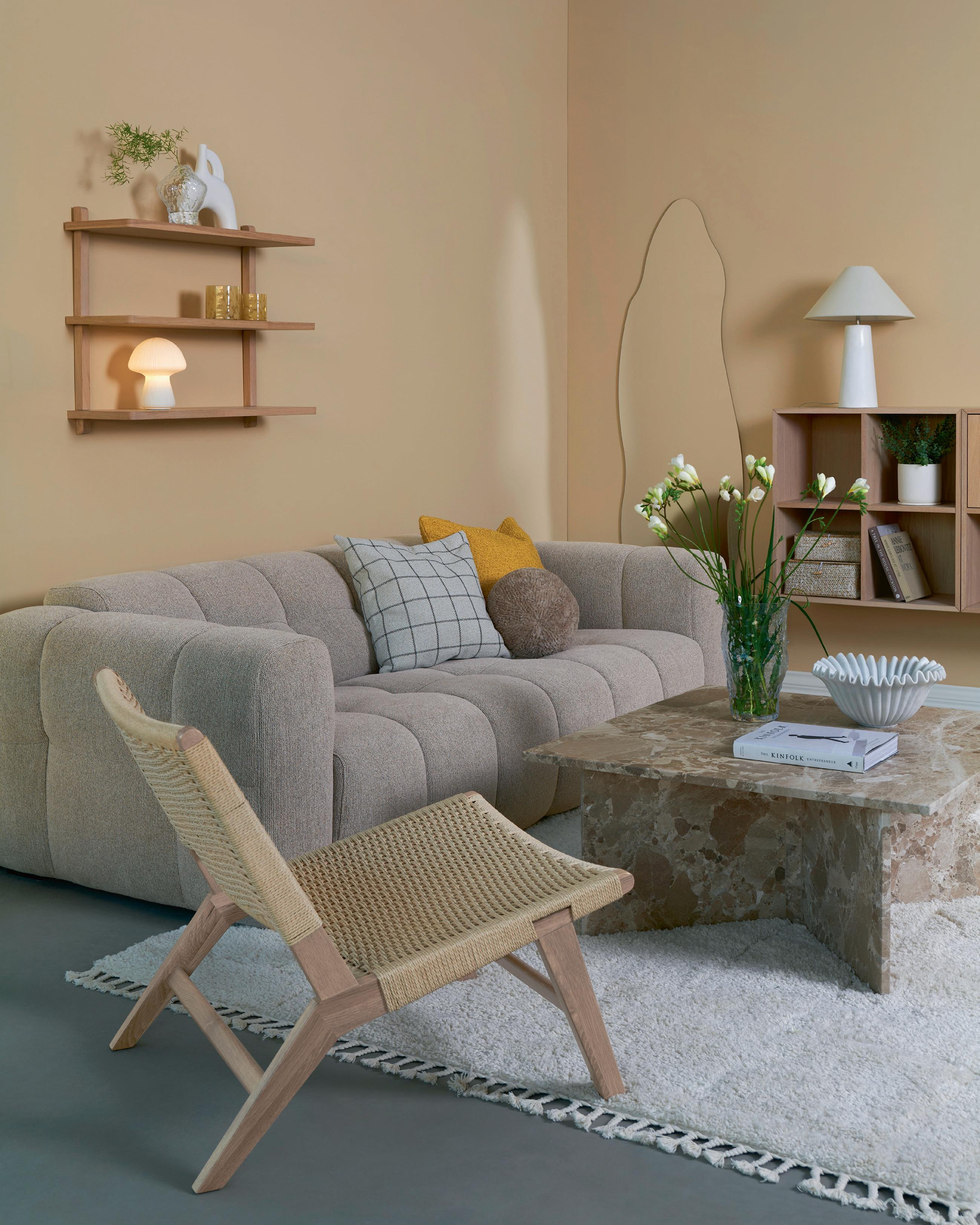Kolleksjonen Skandinavisk optimisme omfavner det lyse, nordiske uttrykket. Tremøbler og et pop av gult skaper en lett og vårlig følelse i hjemmet.