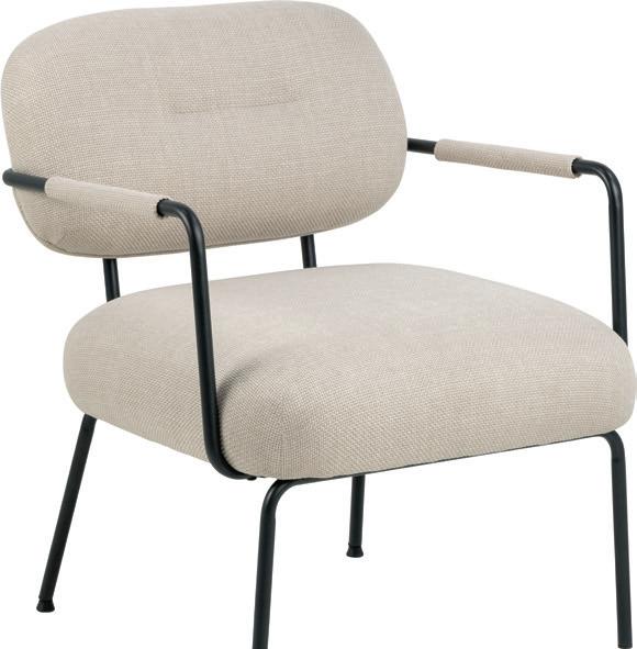 med 2 regulerbare stoler og bord, natur kunstrotting og lys beige puter NÅ 7.999,(før 10.999,-) Nr. 206309 DILLON loungestol i tekstil Basel beige med svarte ben 66x72, H 80 cm 1.999,- Nr. 286406