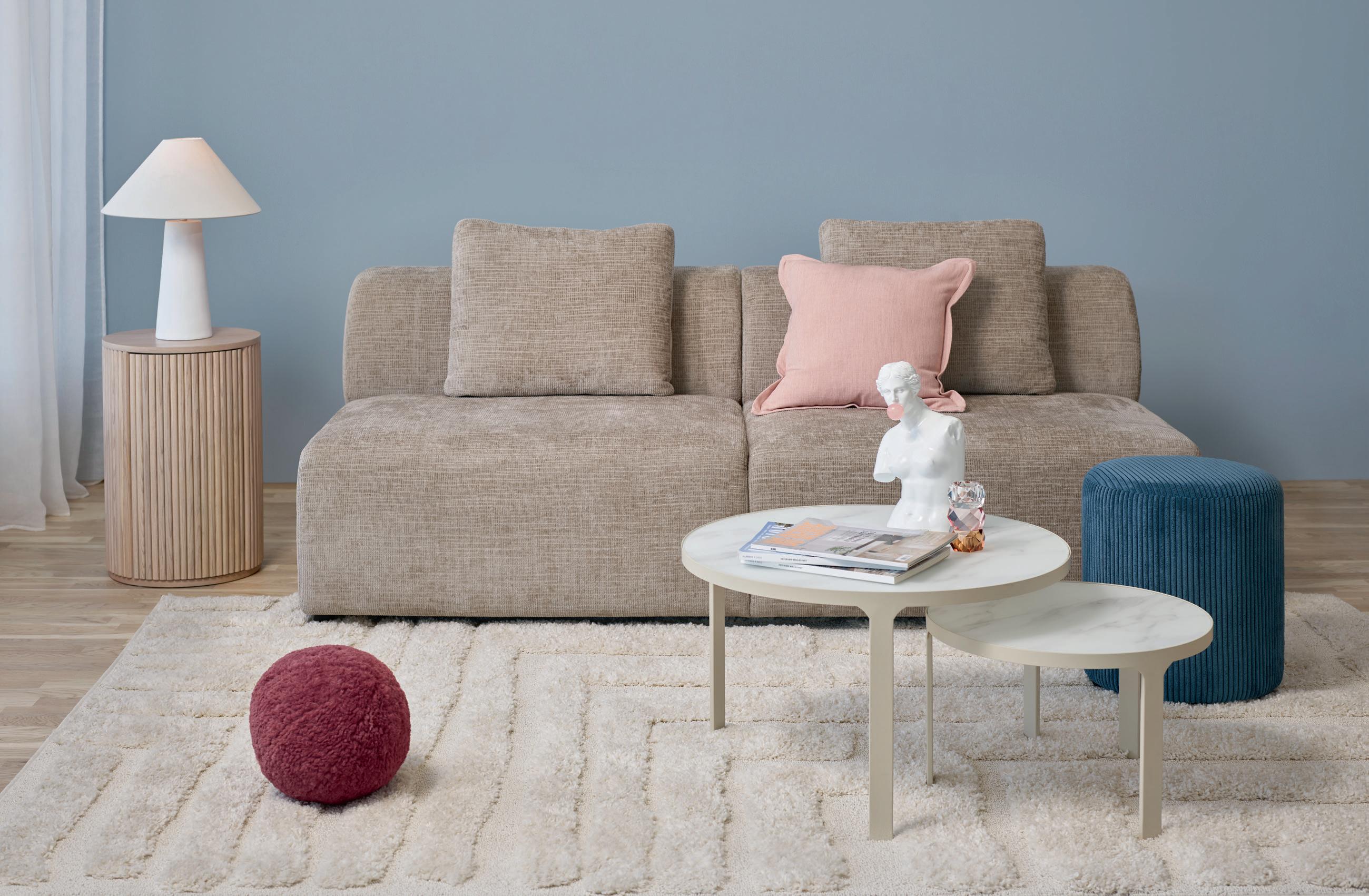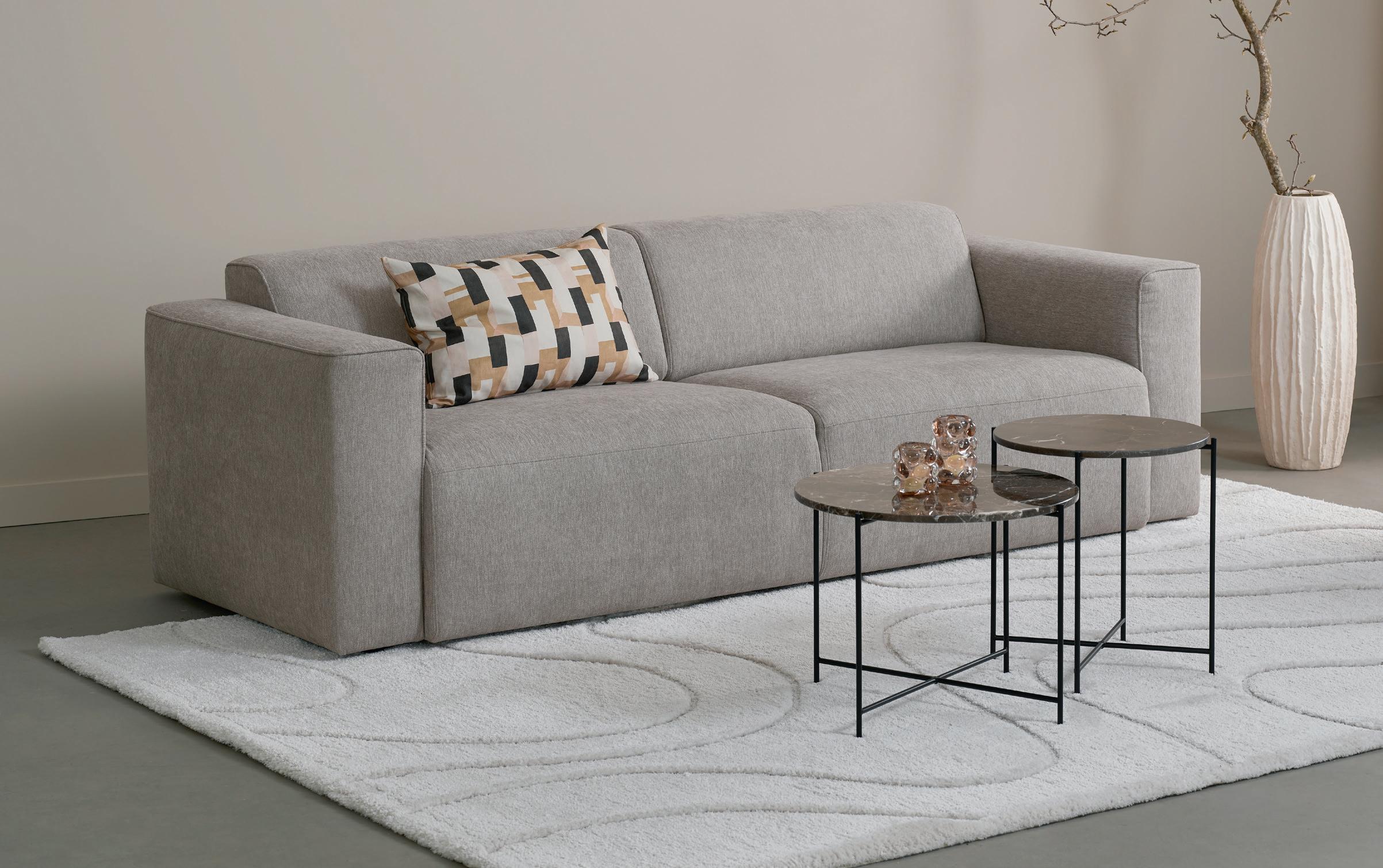 OTELLO Lux sovesofa uten armlene i tekstil Astra fossil sovemål 145x200, 107x200, H 71 cm NÅ 10.998,(før 16.920,-) Nr. 299520 NAKAMEGURO sofabord sett i marmorprint glass Ø 70/50 cm NÅ 4.199,(før 5.199,-) Nr. 298080 -35% PÅ OTELLO LUXSERIEN