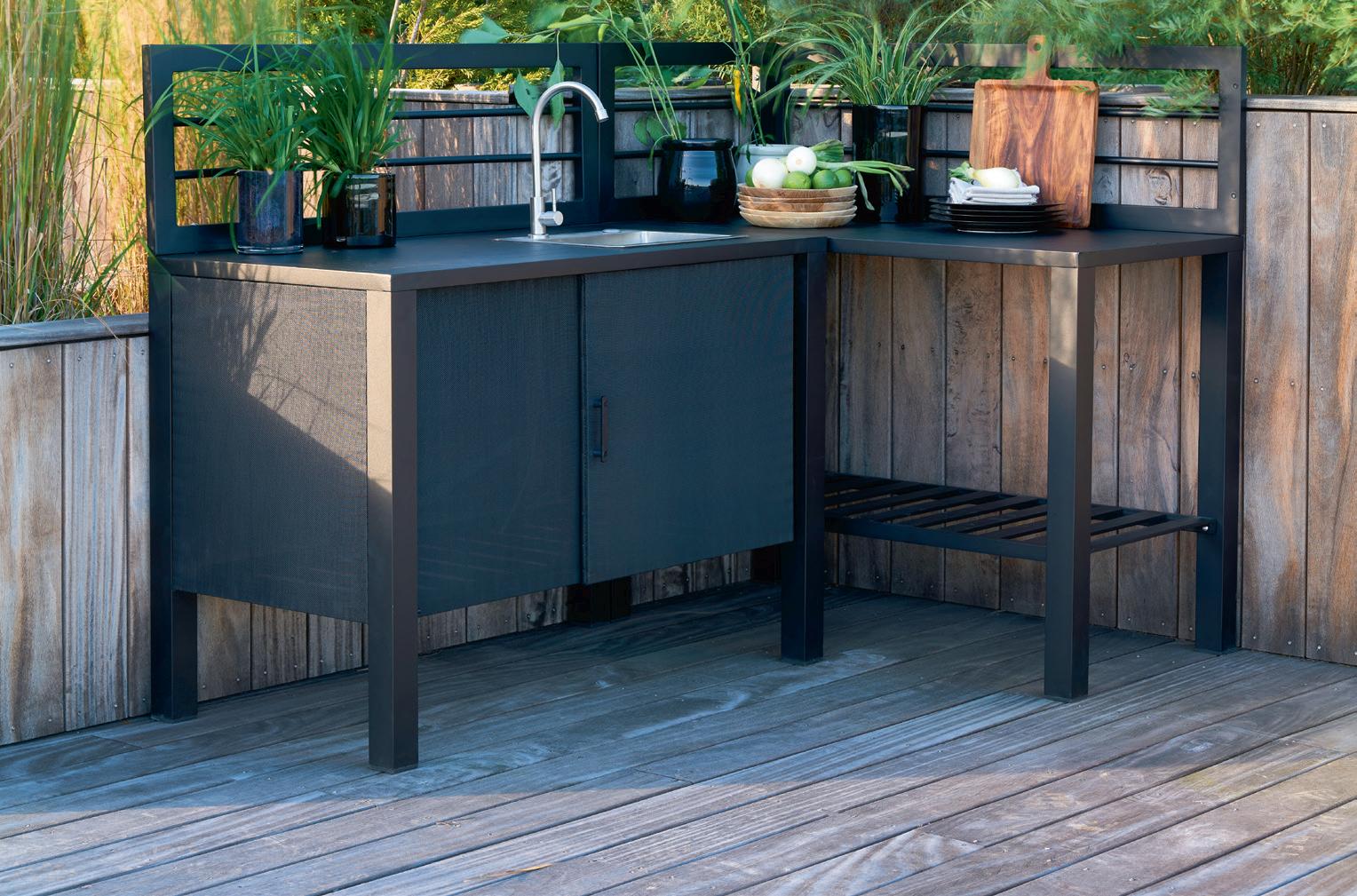 UTAH utekjøkkenbenk i svart aluminium/rustfritt stål 120x60, H 122 cm NÅ 4.879,- (før 6.099,-) Nr. 242930 Utekjøkkenbenk m/vask, kran og paneler i svart aluminium/rustfritt stål 120x60, H 122 cm NÅ 7.819,(før 9.899,-) Nr. 242899