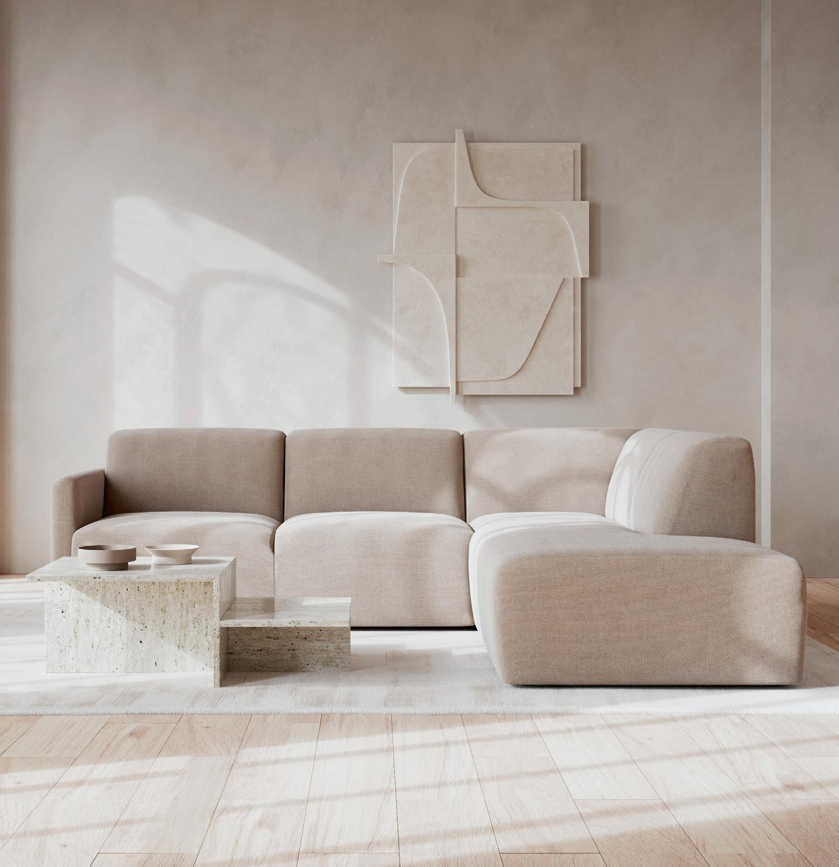 OTELLO Lux hjørnesofa med endeavslutning oppsett 6 venstre i tekstil Storm ecru med svarte ben