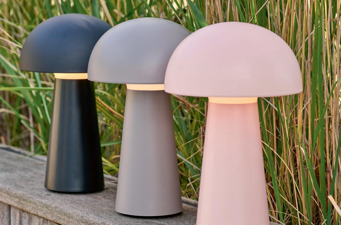 TO GO oppladbar lampe ute og innendørs m/USB-ledning grå/sort/rosa NÅ 350,- (før 699,-) Nr. 294110 / 294109 / 294111 TIM oppladbar bordlampe m/USB-ledning beige/grønn/svart NÅ 499,- (før 999,-) Nr. 294328 / 294329 / 294360