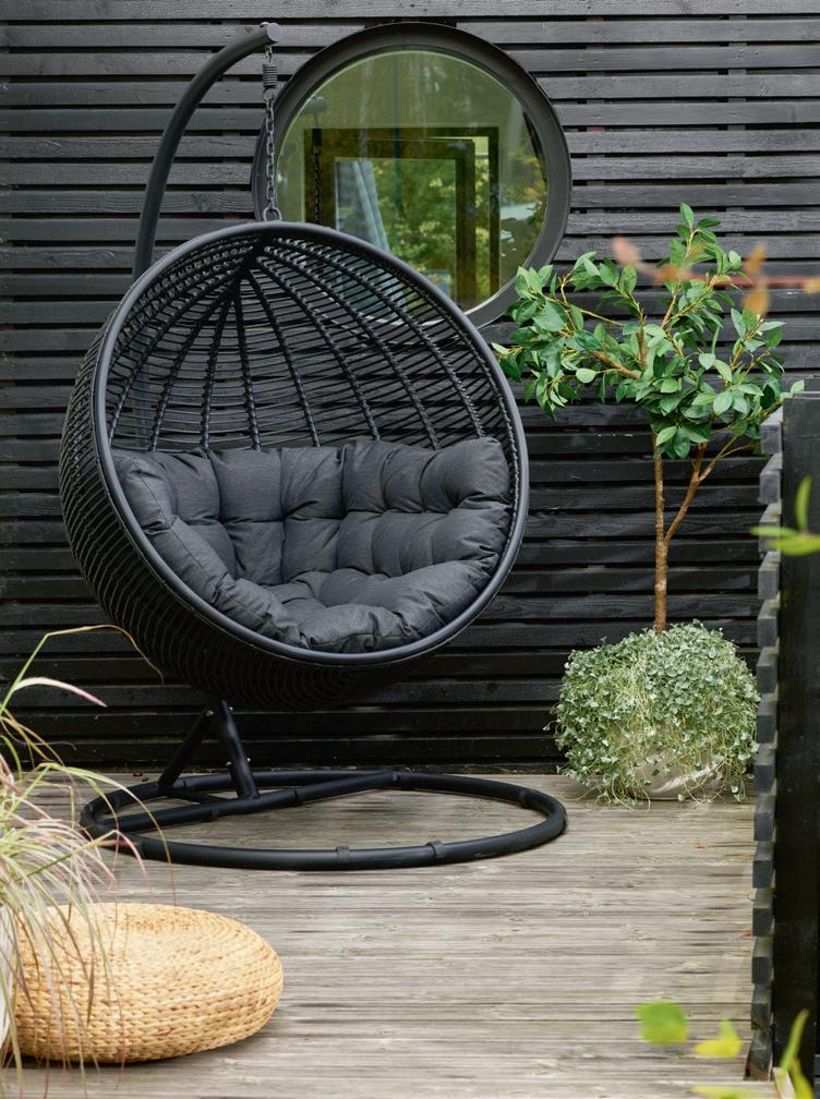 MAGNOLIA hengestol m/svart stativ, svart flett og grå pute 120x120, H 198 cm Max vektbelastning 120 kg NÅ 5.999,- (før 7.999,-) Nr. 216338