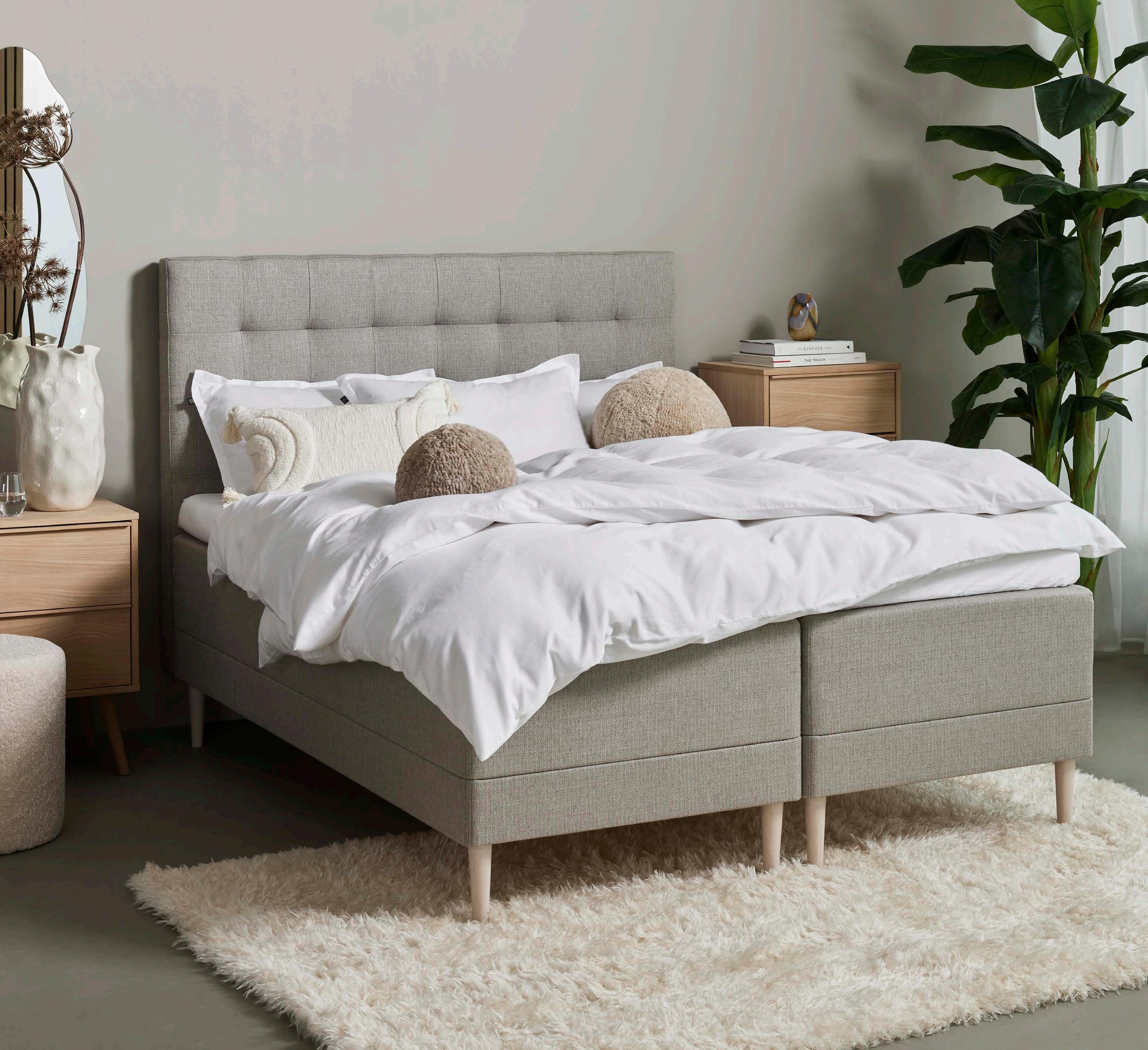 AMBASSADØR kontinentalseng heltrekk i Grey482 med Jensen Sleep 2 overmadrass 150x200 cm NÅ 24.999,- (før 34.999,) Nr. 261083 FENIX PORTRAIT sengegavl i Grey482 til seng 150 cm NÅ 6.079,- (før 7.599,) Nr. 264747 ADD ON FLOOR nattbord i svart tre NÅ 2.559,- (før 3.199,) Nr. 212785