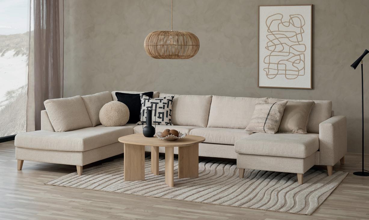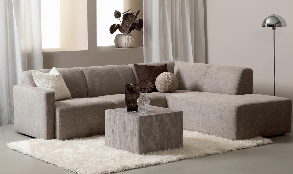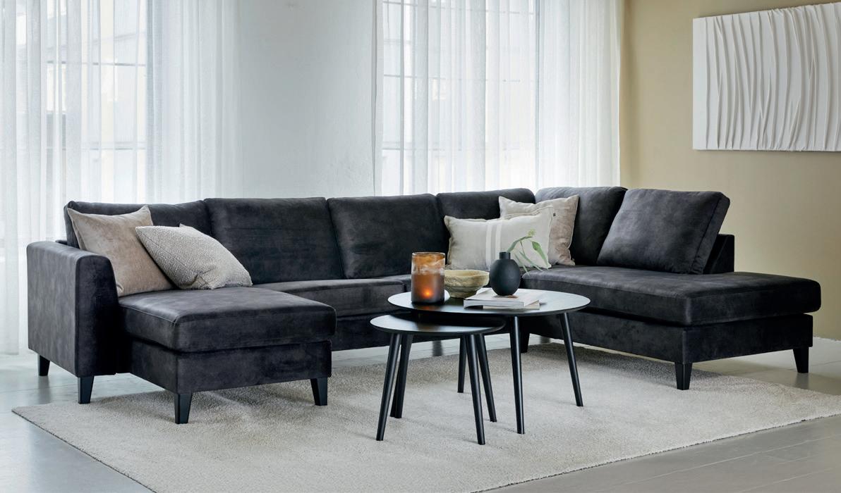 CELIN hjørnesofa med endeavslutning oppsett 1 høyre i tekstil Soro greige med svarte ben 273x184, H 80 cm NÅ 9.999,- (før 13.999,-) Nr. 290652 / 290654 Leveres som høyre- og venstreoppsett.