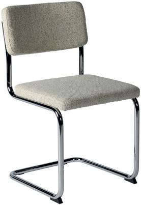 spisestol med grått tekstil og grå metallben