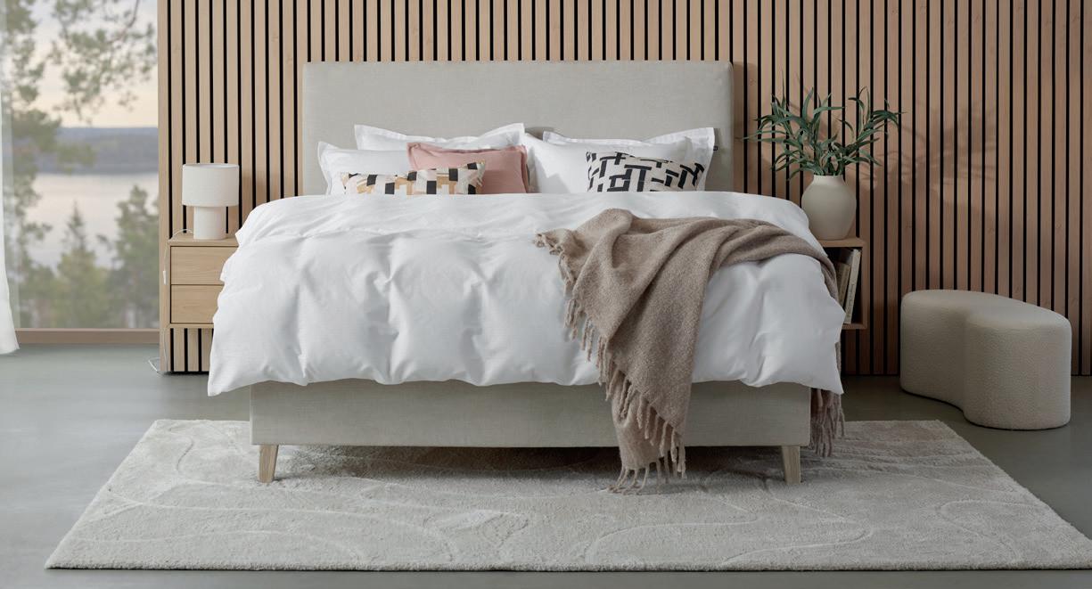SIGNATURE COLLECTION SLEEPING SANDØ kontinentalseng i Ella Creme med Cloudtex Pluss overmadrass og ben i nordisk firkantet brun eik 14 cm, 150x200 cm NÅ 19.999,- (før 34.999,-) Nr. 287393 MyZone: 5.000,- per liggeplass SANDØ sengegavl i Ella Creme til seng 150 cm NÅ 5.999,- (før 7.999,-) Nr. 287470 ISAK nattbord med 1 skuff i lakkert eikefiner brun NÅ 2.239,- (før 2.799,-) Nr. 284829