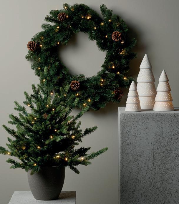 MALA julekrans Ø50 NÅ 329,- (før 549,-) Nr. 285394 BALTHASAR dekortre med lys porselen hvit H 28 cm NÅ 287,- (før 479,-) Nr. 298747 MYRRA dekortre med lys H 32 cm glass brun NÅ 209,- (før 349,-) Nr. 298854 -40%