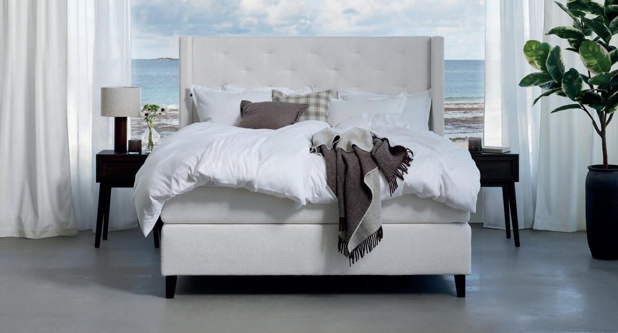 SIGNATURE COLLECTION SLEEPING HITRA kontinentalseng i Gina Creme med Signature Collection Sleeping 1 overmadrass og ben hvitoljet 14 cm 150x200 NÅ 9.999,- (før 16.999,-) Nr. 306243 HITRA sengegavl med knapper i Gina Creme til seng 150 cm NÅ 4.124,- (før 5.499,-) Nr. 306390