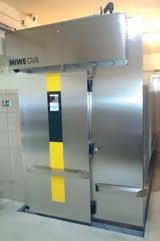 Najbardziej wszechstronna komora chłodnicza. Zakres temp. od -20°C do +45°C pozwala na elastyczność produkcyjną (wszystkie możliwości fermentacyjne: garowanie, opóźnienie garowania, zatrzymanie garowania, szybkie schładzanie), regulowana względna wilgotność powietrza: od 60% do 95%. Dowolna kolejność procesów w wybranych przedziałach czasowych. Sterowanie dotykowe MIWE TC. Duże powierzchnie parowników dopasowują się do przedziałów temperaturowych, wydajne kompresory. Oszczędność energii: 80-milimetrowa izolacja wokół całego urządzenia. r o zrost ciasta