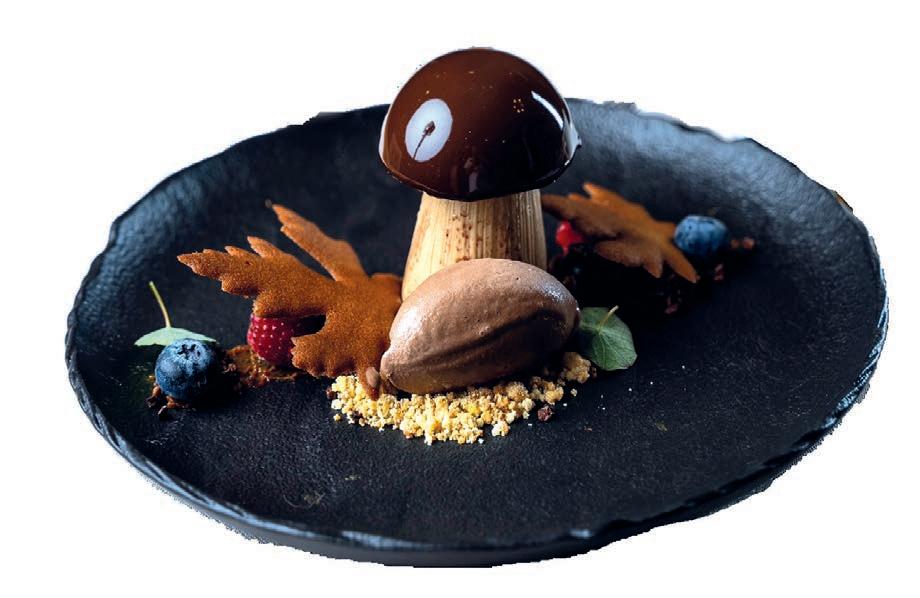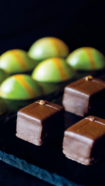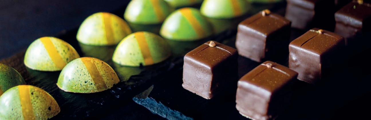przez cały czas wylewa figurki z czekolady. Wykonujemy również praliny z logo firmowym, realizujemy zamówienia eventowe oraz projekty personalizowane. Absolutnie uwielbiam tworzyć dekoracje z czekolady – od pomysłu do finalizacji, która często zaskakuje i przybiera wyjątkową formę. Kocham także same praliny; mam do nich wyczucie i intuicję. Czekoladę, w każdej postaci, po prostu uwielbiam. Choć największy boom na czekoladę dubajską już minął, bardzo inspiruje mnie także wykorzystywanie ciasta kataifi w różnych odsłonach: deserach, pralinach czy drobnych słodkościach. Goście uwielbiają je za charakterystyczną, chrupiącą strukturę. Eksperymentujemy również z mniej oczywistymi smakami, takimi jak grzyby w deserach.