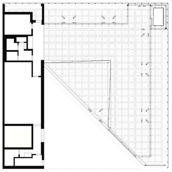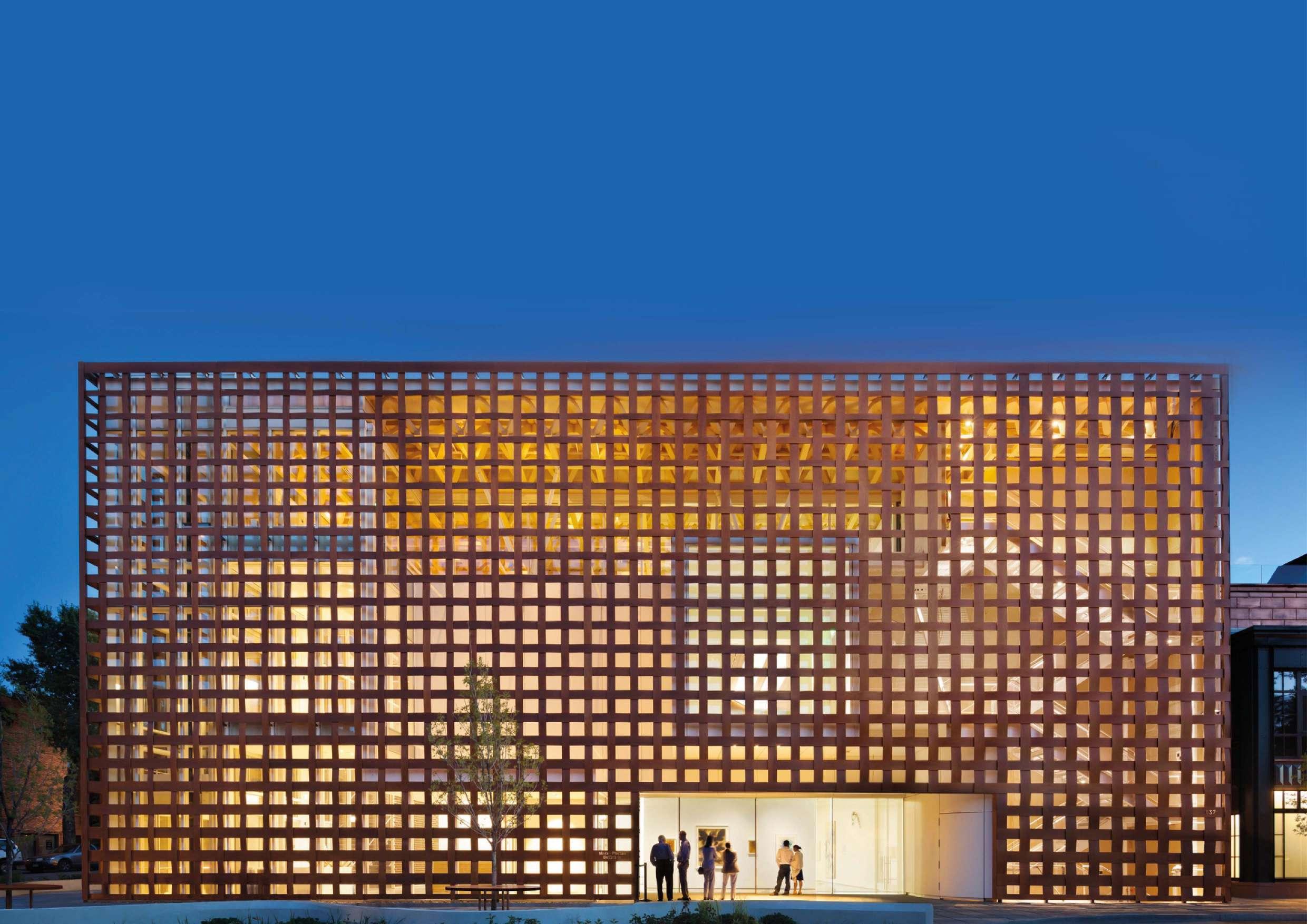 one spolja da stupe u interakciju sa unutrašnjošću zgrade i omogućujući onima unutra da vide 12.500 kvadratnih stopa fleksibilnog izložbenog prostora u šest glavnih galerijskih prostora ispunjenu prirodnim svetlom.