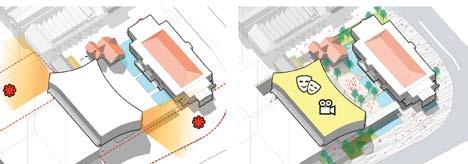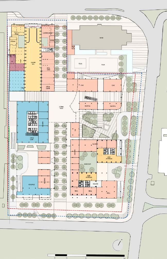 The new development has potential for a cultural hub with the new modern theatre and amphitheatre plaza supporting existing heritage theatre.