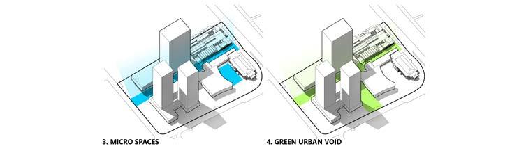 Micro Open Space Creates enclave micro human space for festive activities Green Urban Void Contribute to the city green urban park and public spaces.