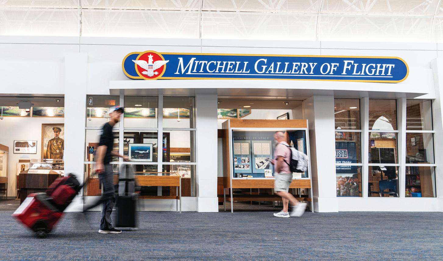 ONE OF MKE’S UNIQUE FEATURES is the Mitchell Gallery of Flight, a museum in the main terminal that is free and open to the public 24/7. The museum was a vision of local aviation historian George Hardie Jr., who spoke to the county about showcasing the aviation history of Southeastern Wisconsin. After a couple of years of fundraising, the Friends of the Mitchell Gallery of Flight, a volunteer organization, opened the museum doors in 1988. In 2020, the terminal was remodeled and the museum moved to its current location.