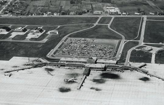 By the 1950s, passengers were able to fly further on planes like the Boeing 707, which held around 150-200 passengers. Growth only accelerated in the commercial airline industry as it entered the jet age and looked to fill demand to travel to newly accessible destinations – and Milwaukee’s airport began to look a little more like what we know today. It expanded its footprint from 163 to 1,500 acres, and a new three-concourse, twolevel terminal along Howell Avenue with 23 gates was completed at a cost of $3.2 million in 1955.