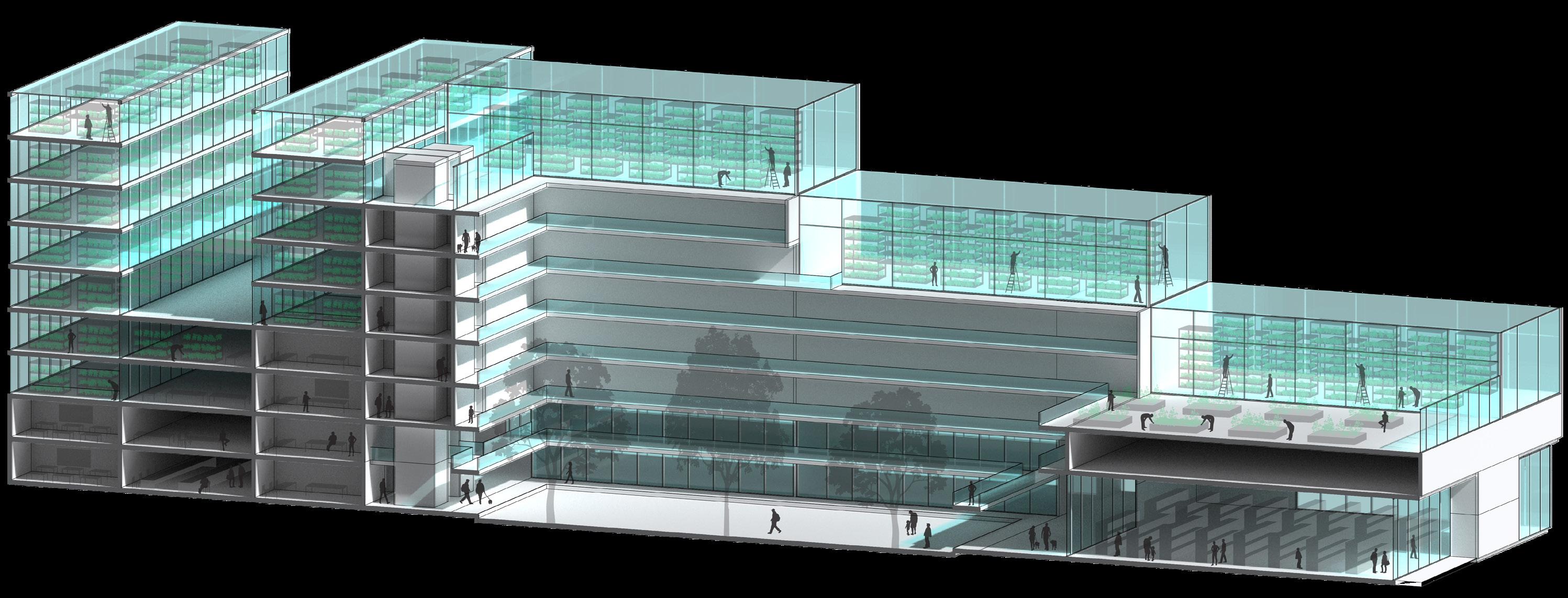 We envisioned our design as a housing typology that could be adopted within urban planning as a way for people to access affordable groceries and to develop a self-sustaining community within the framework of high density mid/high rises.