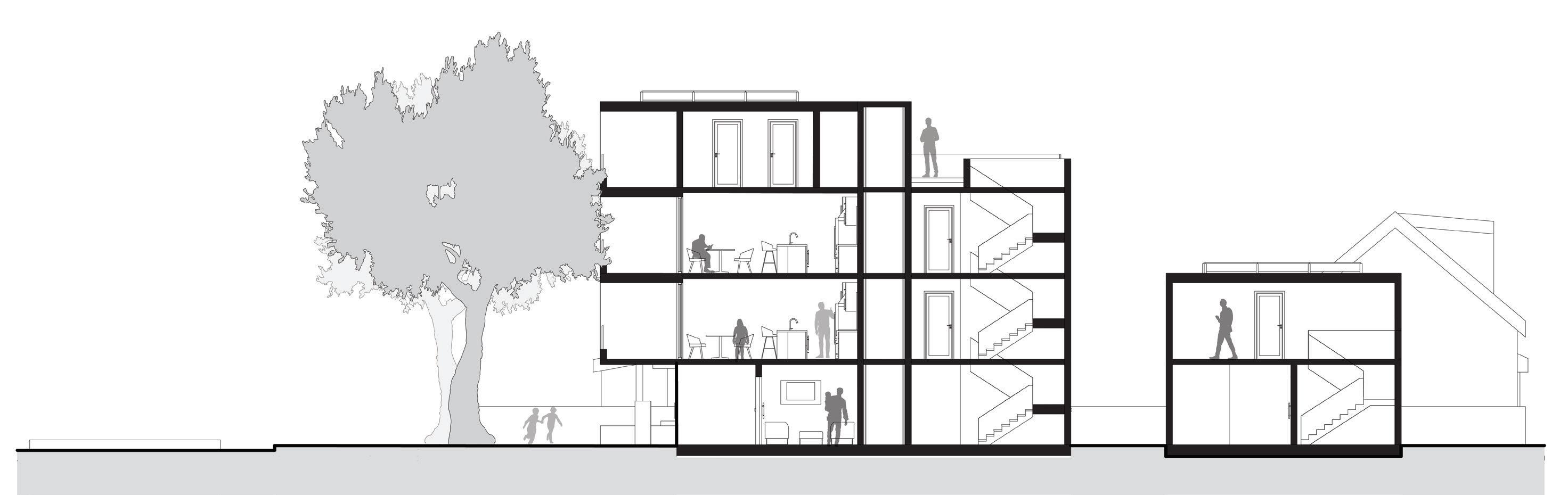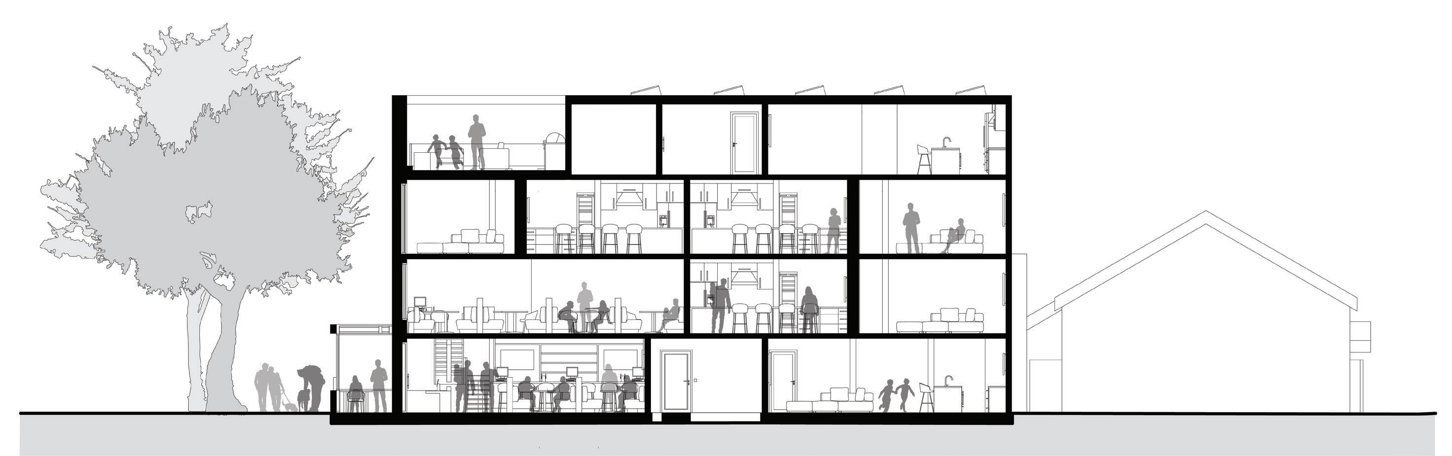 My design seeks to increase the density on a double lot along Windsor and 31st Street in Vancouver. There is a restaurant and bar on the ground level of the building which will act as a local hub for the surrounding neighborhood and community.