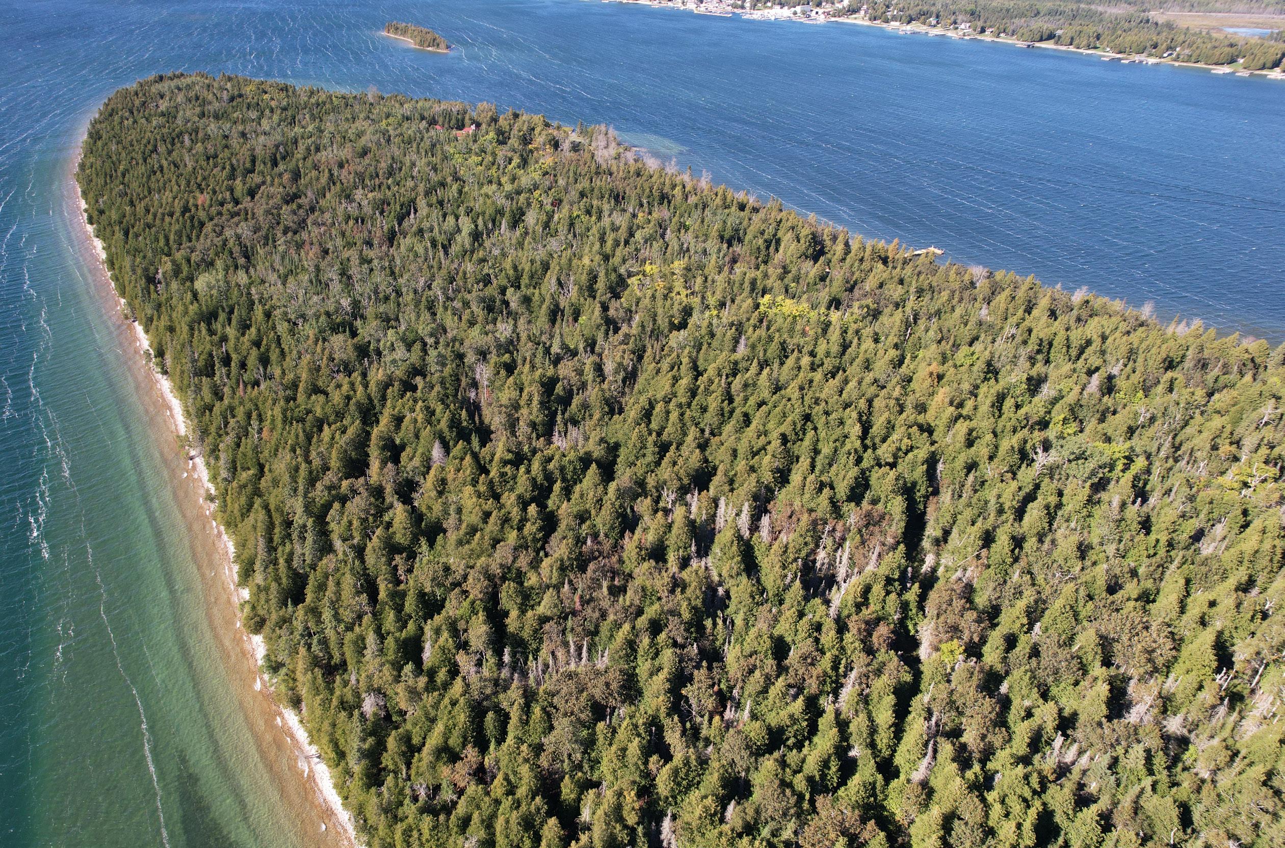 In December 2023, LTC acquired one of its most significant preserves to date: Enji-minozhiiyaamigak, an Anishinaabemowin phrase that means “Place of Peacefulness.” The 56-acre parcel, purchased for $3.15 million, includes a quarter-mile of shorefront, the largest remaining unprotected swath of undeveloped shoreline between Charlevoix and the Mackinac Bridge.