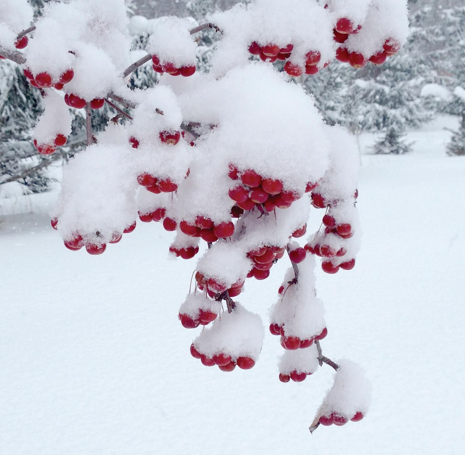 Flurries and flurries falling down from the sky, Bright red berries catching our eye.