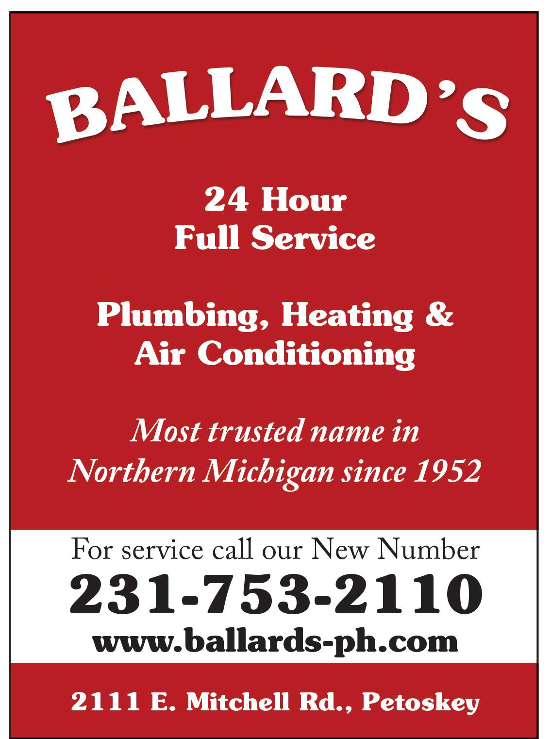 Your comfort has been our business for over sixty years - Ballard’s Plumbing & Heating, 2111 E Mitchell Rd., Petoskey, MI 24 Hour Emergency Service - 231-753-2110 www.ballards-ph.com