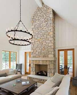 The aesthetic trend has shifted toward tall linear expanses for the chimney that goes to the ceiling of the room. Natural materials are used such as stone where craftspeople carefully lay each piece to form a masterpiece.