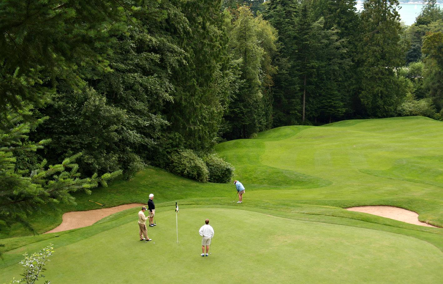 beautifully manicured bent grass fairways and large undulating putting surfaces. Many holes weave their way across a nice mix of open and tree lined holes with expansive surrounds of heather. The last 4 holes are among the most challenging