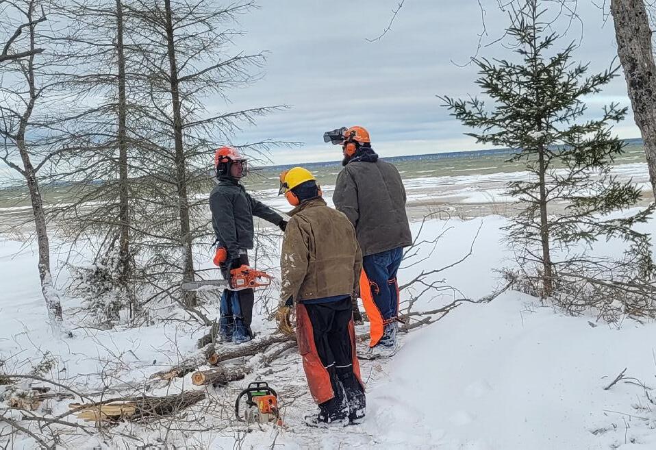 Home Depot of Petoskey donated tools and helped clear the Offield Family Viewlands Working Forest Reserve mountain bike trails.