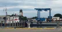It was a big day in mid-August when a barge arrived at our facility carrying the 82-ton Travelift from Walstrom Marine’s Harbor Springs location to swap with Cheboygan’s 70-ton lift. Cheboygan stores the larger vessels, so it was a logical move. The crew watched as the lift was offloaded at its new home in Cheboygan. The loading of the 70-ton lift required a bit of finesse, but before long, it was gliding down the river on the barge, en route to Harbor Springs.