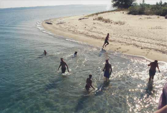 “A hundred ocean ships could safely anchor here .In the summer, few craft made use of this anchorage, but in the storms of autumn, sailing vessel of all descriptions, from little schooners to great six-master, and sideand stern-wheel steamers anchored in the harbor. Always the sight of a storm-driven boat heading our way brought a thrill of excitement to old and young. This shipping brought business to the traders, but left work for Father Zorn, the village priest, in mending the morals of his people.