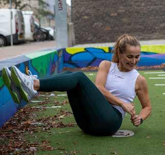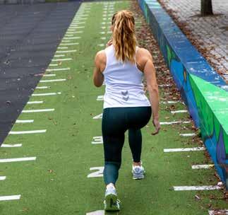 WALKING LUNGES Træner: Underkrop, balance og stabilitet. Instruktion: Stå med fødderne i hoftebreddes afstand. Tag et stort skridt fremad med det ene ben, og sænk kroppen, indtil det bagerste knæ næsten rører jorden. Sørg for ca. 90 graders vinkel i begge knæ i bundpositionen. Træd derefter frem med det modsatte ben og gentag skiftevis.