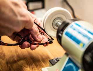 ”Vi polerer stellet og udskifter reservedele, hvor det er nødvendigt. Alt man skal gøre, er at aflevere brillerne til en optiker i en af vores fem butikker, og så vil man kort tid efter modtage sine briller helt nyrenoveret. Renovering og genbrug er både godt for økonomien og for miljøet,” pointerer Stig Hansen. Priserne ligger på 400 kr. for acetat reparation, og 500 kr. for henholdsvis fuld polering og reparation af acetatstel, nyt hængsel fastgjort med nitter samt nyt hængsel med indsmeltning og acetatprop.