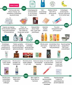 Samtidig bruger de betydeligt mindre plast på hver eneste plastikflaske i forhold til tidligere. Det alene har på ½ liters flaskerne medført, at de har sparet 380 tons plast om året. Tidligere solgte de tre eller fem juiceflasker sammen, hvilket medførte brug af emballage. Nu sælger de dem kun enkeltvis og sparer dermed en del emballage.