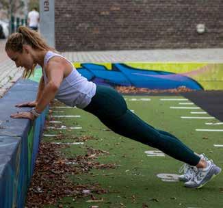ARMSTRÆKKERE (PUSH-UPS) Træner: Skuldre, bryst, triceps og ryg. Instruktion: Stå foran en bænk, og placer hænderne i skulderbredde. Spænd op i mave og baller, så kroppen danner en lige linje fra hoved til hæle. Sænk kroppen langsomt, indtil armene danner en 90 graders vinkel, og pres derefter eksplosivt tilbage til udgangspositionen.