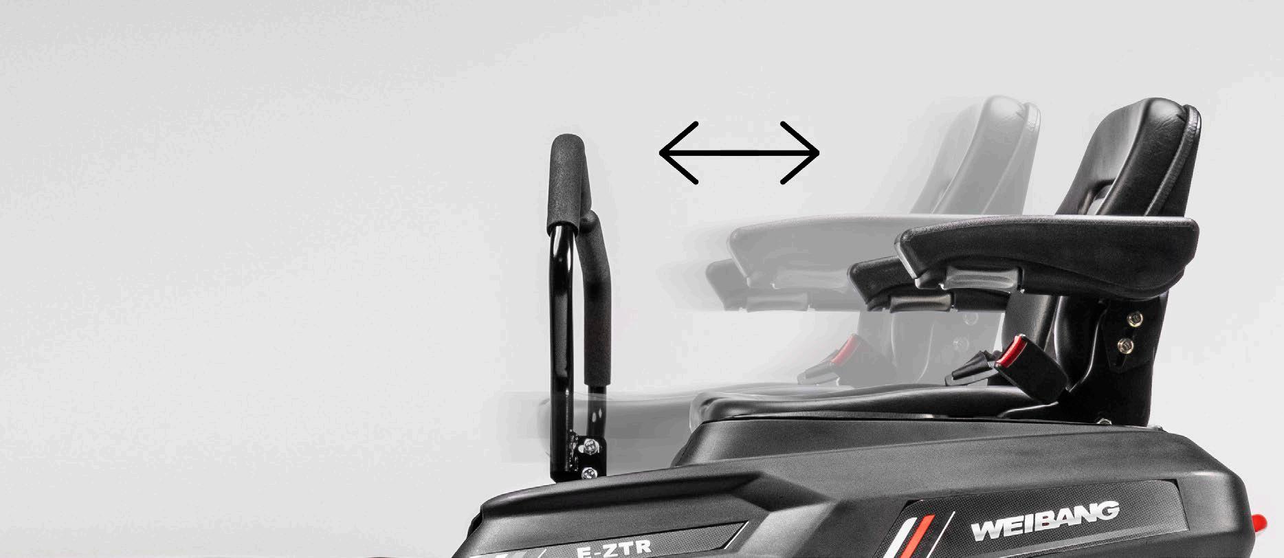 The iON zero turn mower features fully adjustable seating positions. Similar to that in a car, simply pull the lever under the seat and slide forwards or backwards to the desired position. The seat has a high back design and the addition of arm supports and a seat belt for comfort and safety.