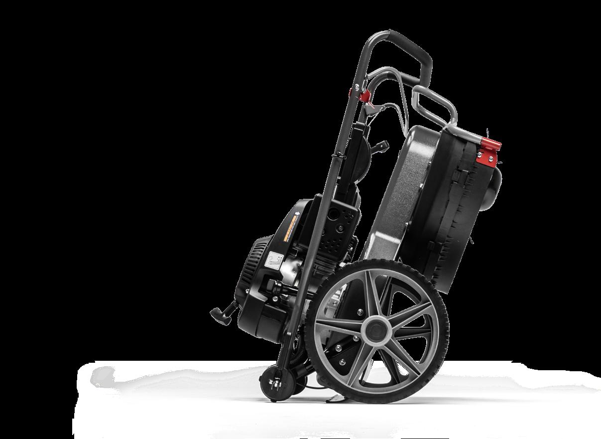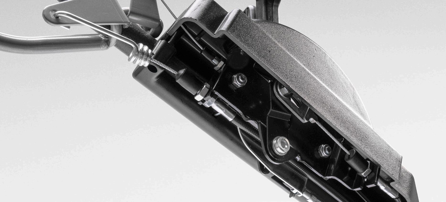 • We are the only brand that offers a solution to our customers for 4 wheeled and rear roller mowers. We have designed the bracket to be easily adjustable to move in and out of the working position without tools.