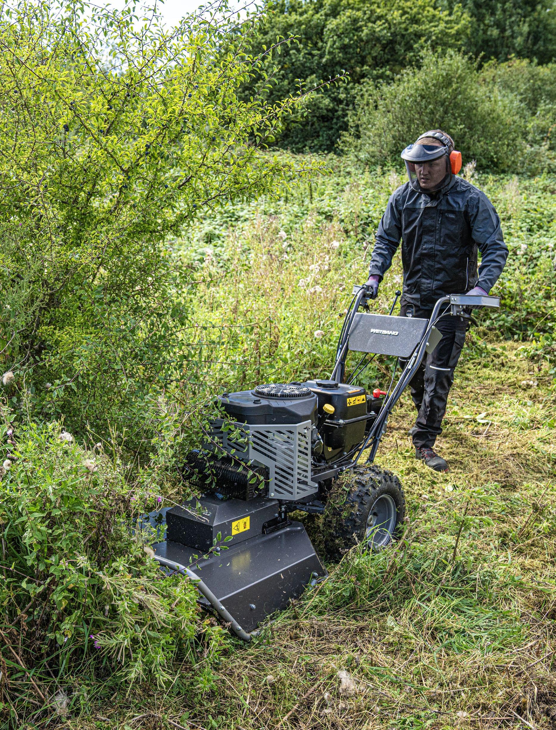 The 68 WFP features a wide 68cm cutting width and CVT drive. Featuring a pivoting steel cutter deck with 38 Y-shaped flail blades to cut, mulch and spread material for a clean finish. Commercial power comes from the WEIBANG XC400H engine and the H.O.C winding screw allows fast height adjustment.