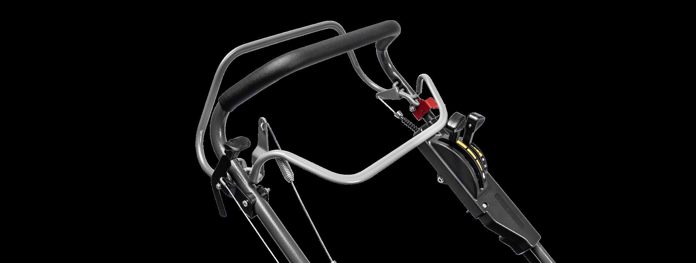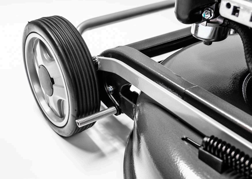 The central height adjustment is supported by a heavy duty foot pedal to raise the cutter deck. With a choice of 10 positions from 15mm for a tidy formal finish and up to 115mm for longer areas.