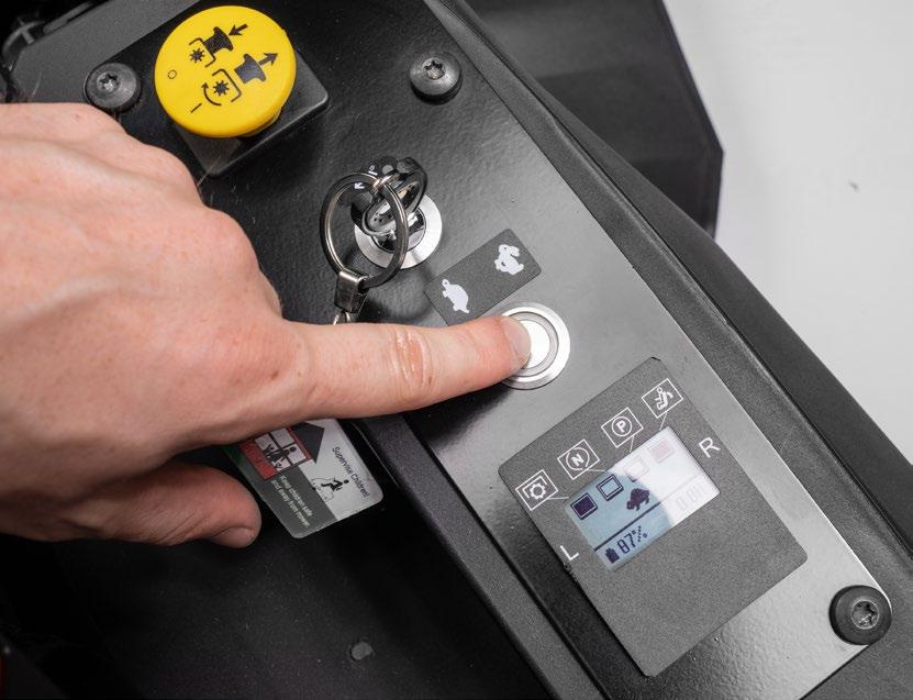 The 106 ZT control panel features various information such as battery status and includes a speed switch to allow for faster or slower drive speeds depending on conditions.
