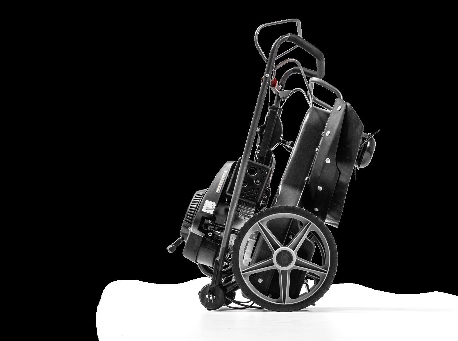 As a commercial Wheeled Trimmer transportation is key, which is why we developed our quick release folding handles to allow for easy lifting when moving between locations, and easy access to the underside of the deck for cleaning and general maintenance.