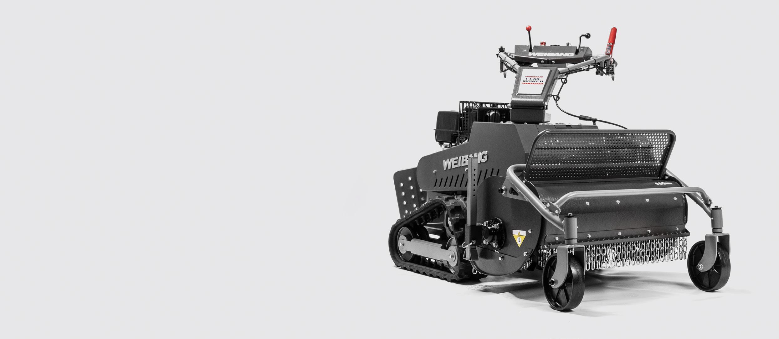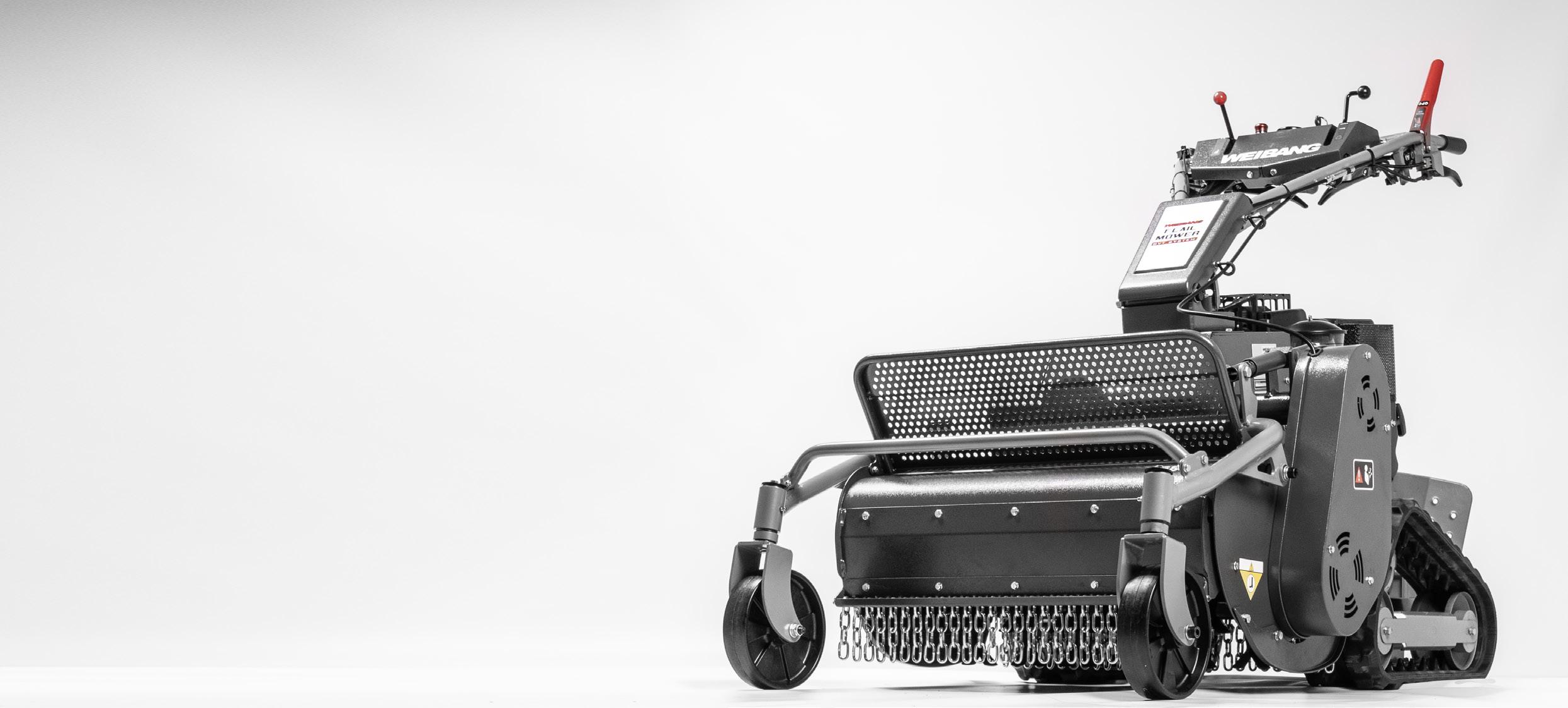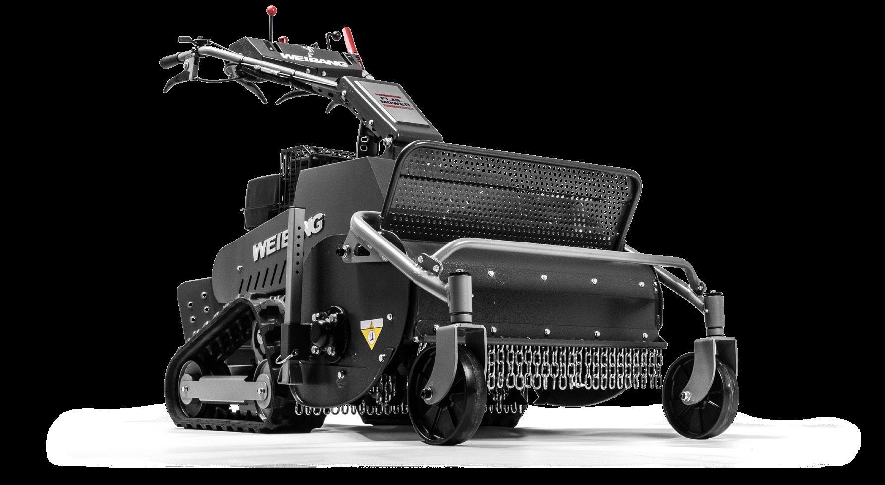 The 68 TFP features a wide 68cm cutting width and E-drive. Featuring a hybrid power system utilising the WEIBANG X400 engine and twin wheel motors to drive the tracks and offer zeroturn capability. The machine can be used as a walk behind or stand-on mower, or remotely with the optional remote control kit.