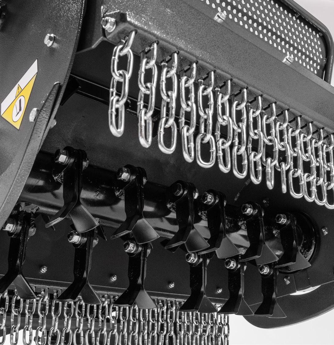 The flail rotor features commercial grade bearings and is fitted with 38 specially designed Y-shaped blades for high cutting productivity in any conditions.