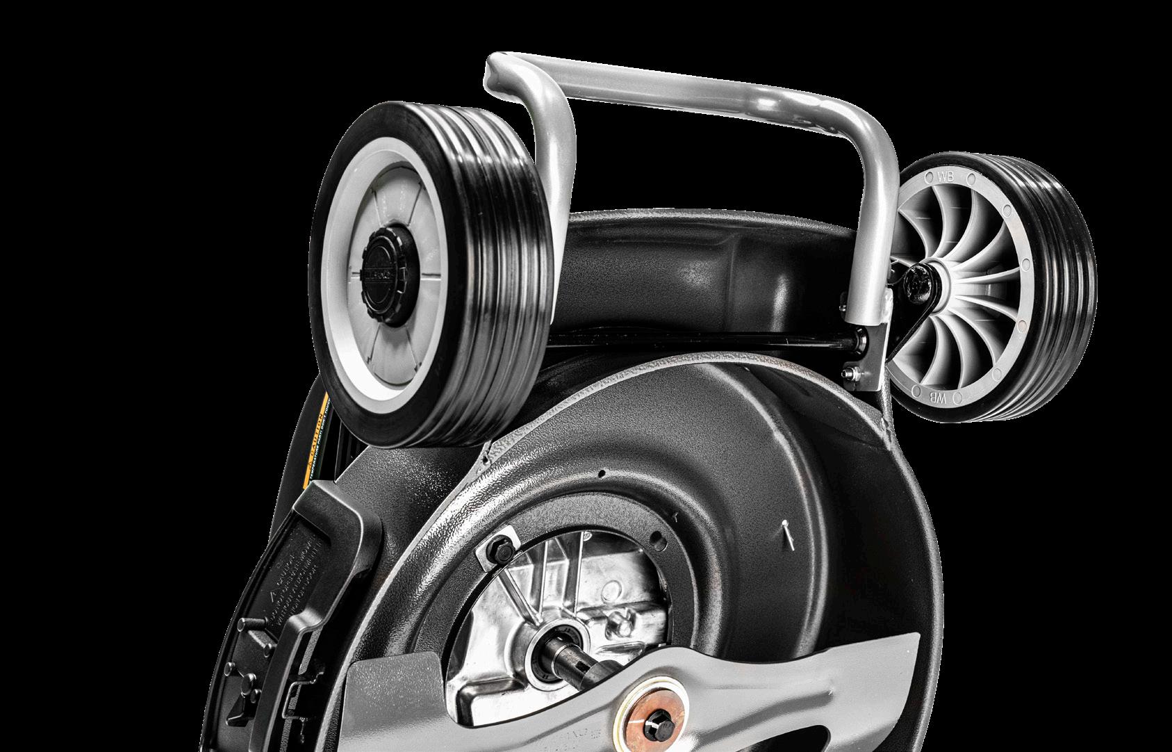 The front castors allow exceptional manoeuvrability when in use, with a simple locking mechanism for when straight lines are required.
