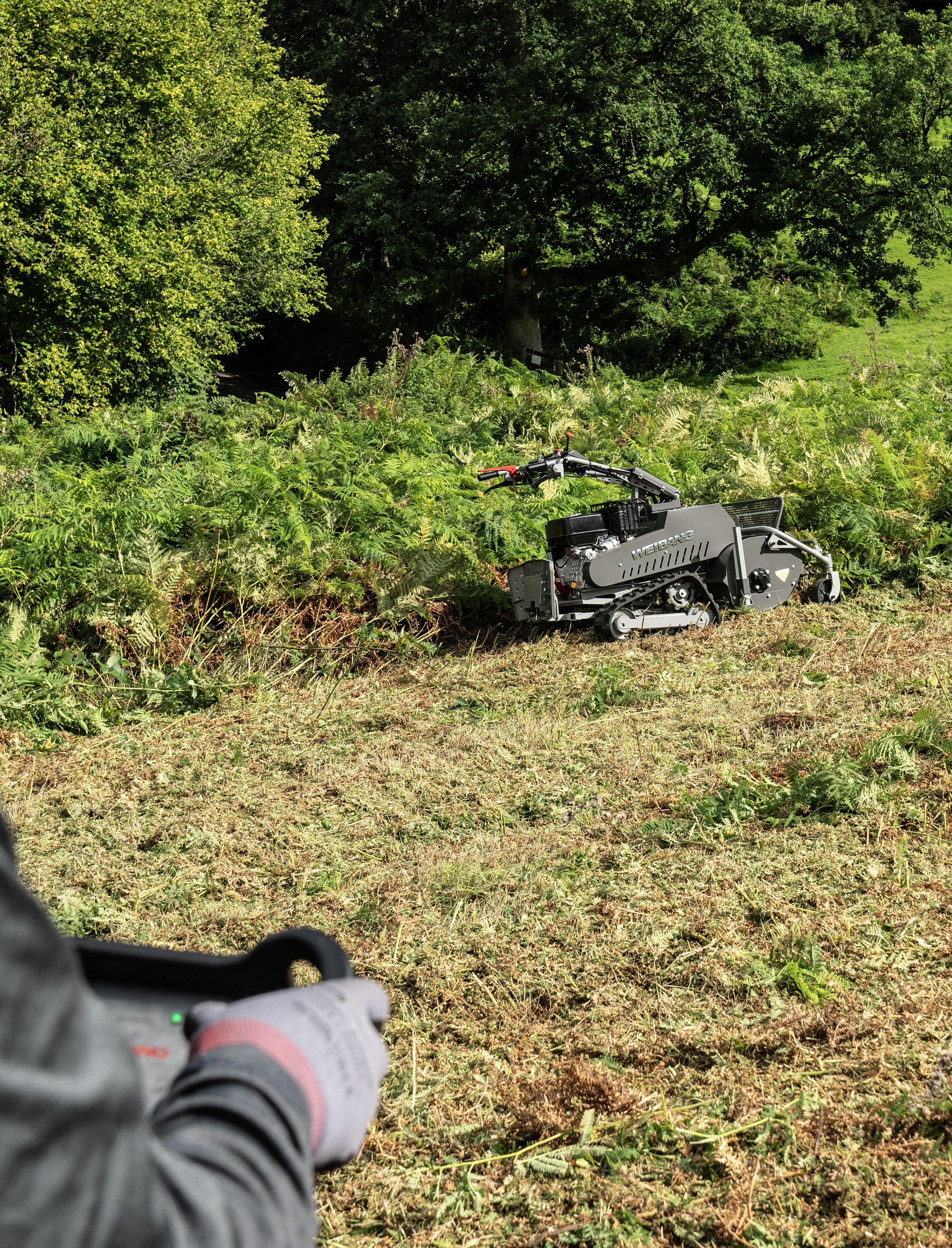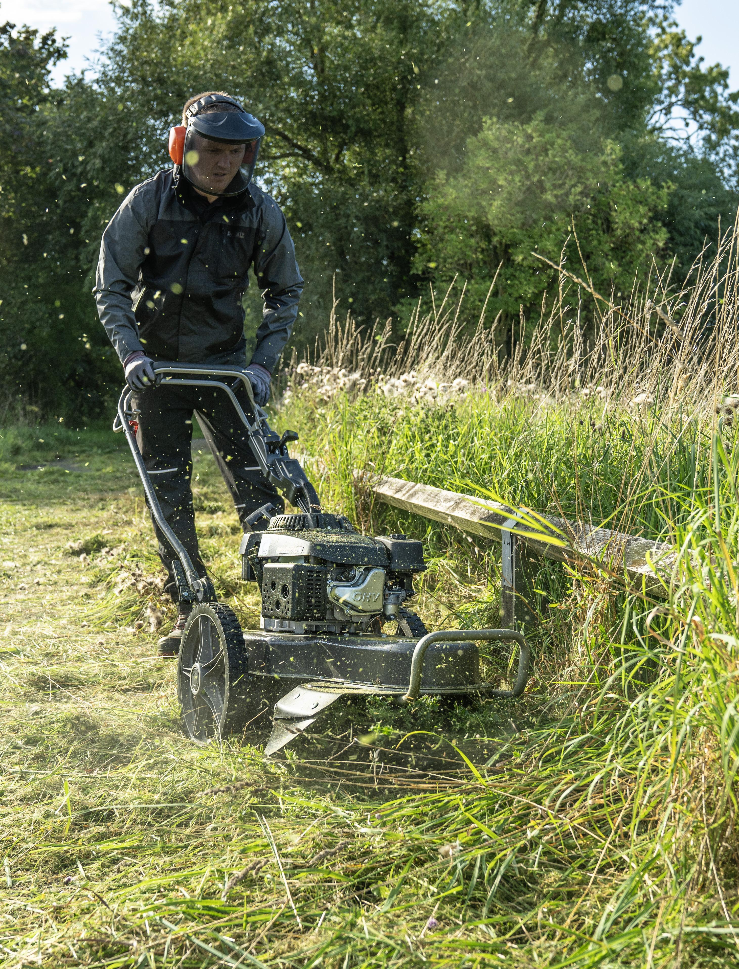 The Velocity 68 TFP offers unrivalled versatility, with the ability to be used in 3 modes. Use the machine as a traditional walk-behind flail, or as a stand-on mower thanks to the foldaway standing platform when tackling tougher terrain. The optional remote control kit allows the machine to be controlled remotely by the operator where conditions do not allow an operator presence such as slopes and heavy overgrowth.
