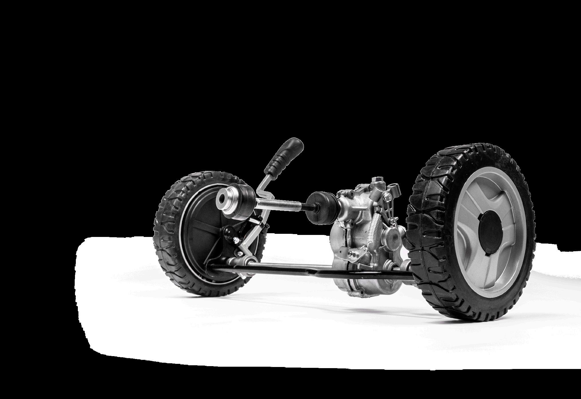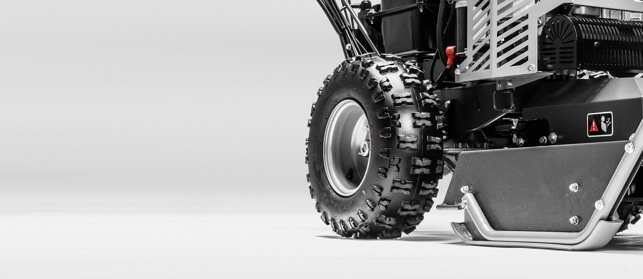 The Velocity Field and Brush Mowers feature powered steering for easy turning over any terrain. Thanks to the integrated drum wheel brakes, simply pull the left lever to turn left, and the right lever to turn right, with near zero-turn ability.