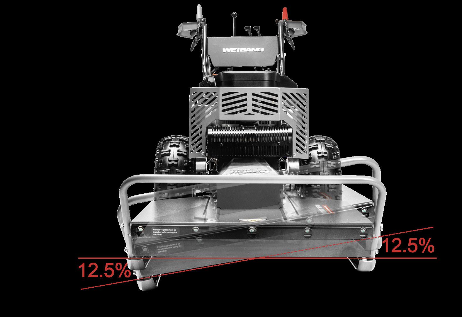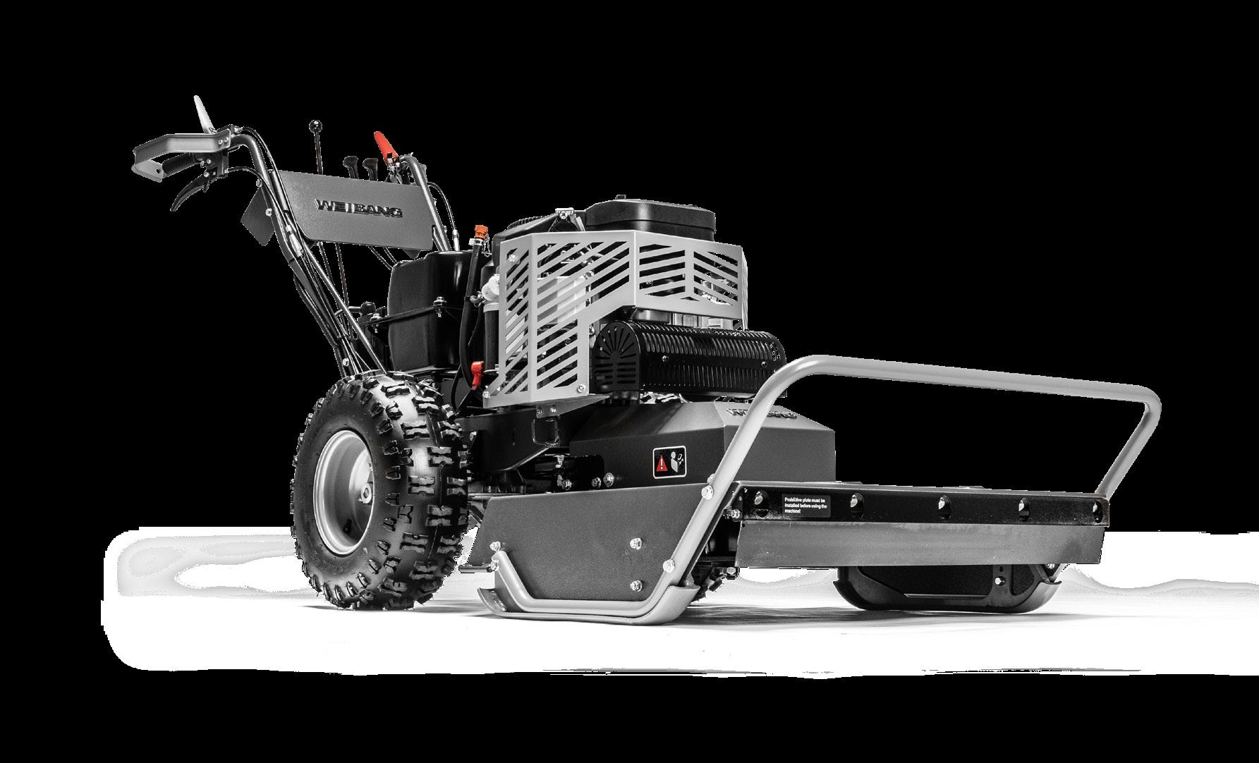 The 86 FBM features a pivoting 86cm steel side discharge cutter deck for the highest productivity when mowing large overgrown areas. Additional power comes from the mighty WEIBANG XC760T twin cylinder engine. Capable of cutting though grass and weeds up to 8ft high and 3” thick saplings.